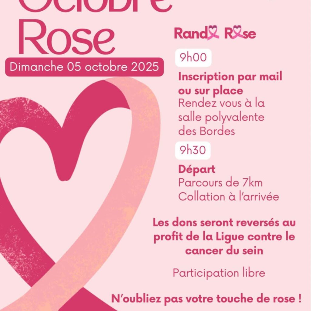 A l’occasion d’OCTOBRE ROSE, je m’engage aux cotés de l’association sportive BODY BORDES dans la lutte contre le cancer du sein et vous invite à une randonnée solidaire.